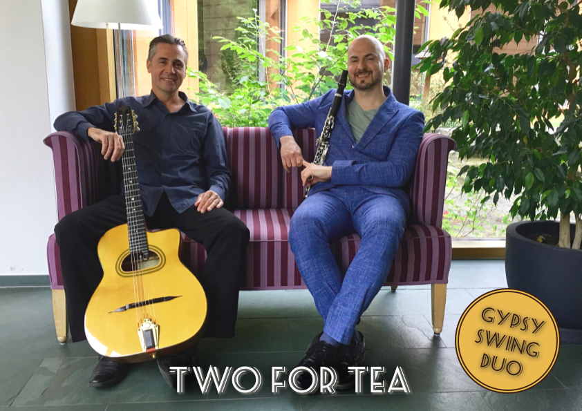 Bekanntester Exponent war Django Reinhardt und sein Hot Club de France. Dieser Musik hat sich das Duo „TWO FOR TEA“ mit viel Leidenschaft verschrieben und spielt quer durchs Repertoire von Swing über Gypsy Bossas bis hin zu Balladen.